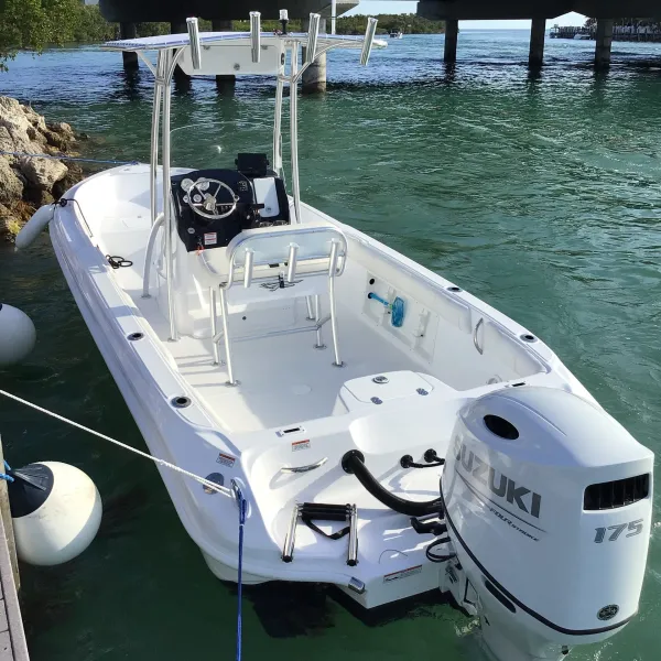 This boat comes equipped with a Bimini top, GPS, VHF, AM/FM radio, and Coast Guard safety gear. Enjoy a relaxing and effortless adventure as you escape onto the open water.